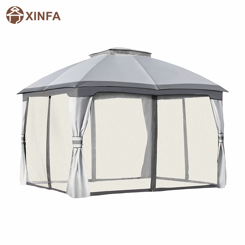 10' x 12' Outdoor Gazebo Patio Gazebo Canopy Shelter w/Double Vented Roof, Zippered Mesh Sidewalls,Grey