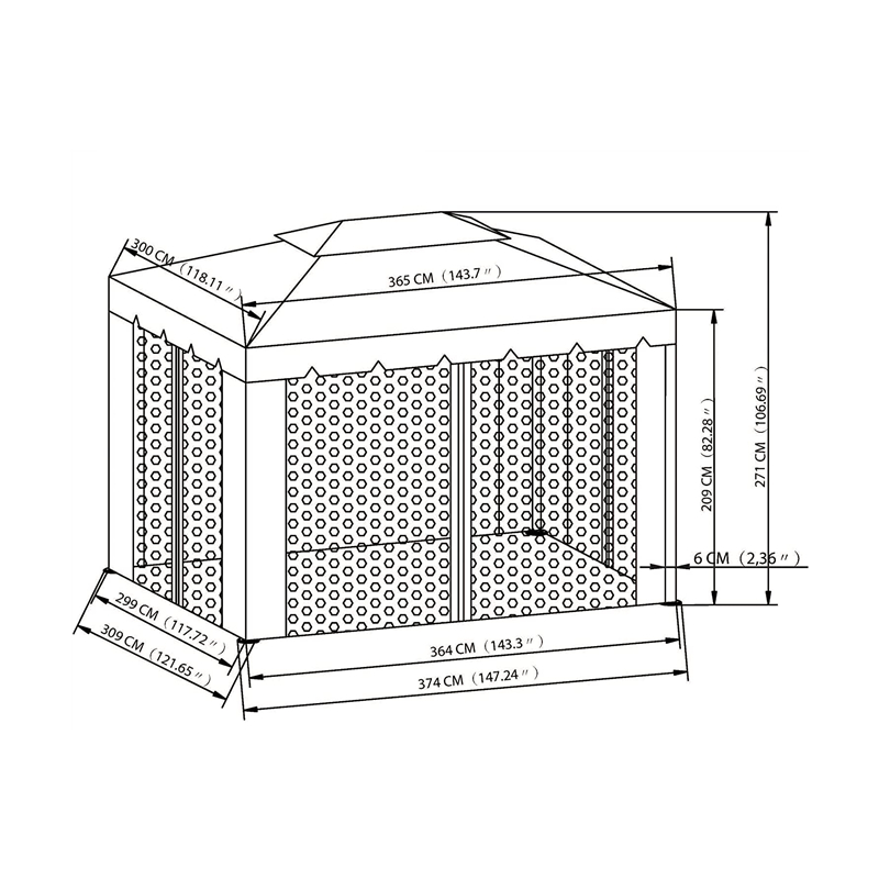 Sturdy iron frame, four triangular shelf, and eight ground staks make the assembled tent more stable Double tier roof, fine mesh sand, improve the flow of air, effectively prevent mosquitoes from entering the shed, not bothered by mosquitoes, 180 grams of polyester fabric, strengthen the shelter positive, make people more comfortable in the shed The spacious design, provides enough space to make the gazebo tent more spacious and comfortable, and can accommodate more people or items such as larger sofas without crowding Equipped with 4 fast triangle panel to increase the overall stability,Double roof design, strengthen the circulation of air, make in the shed more comfortable