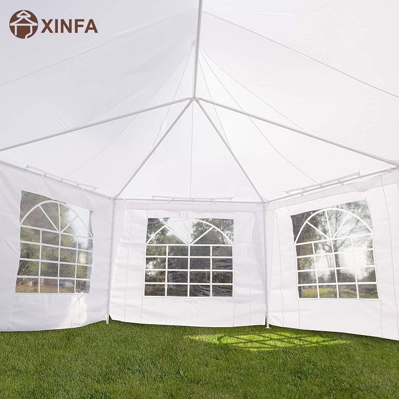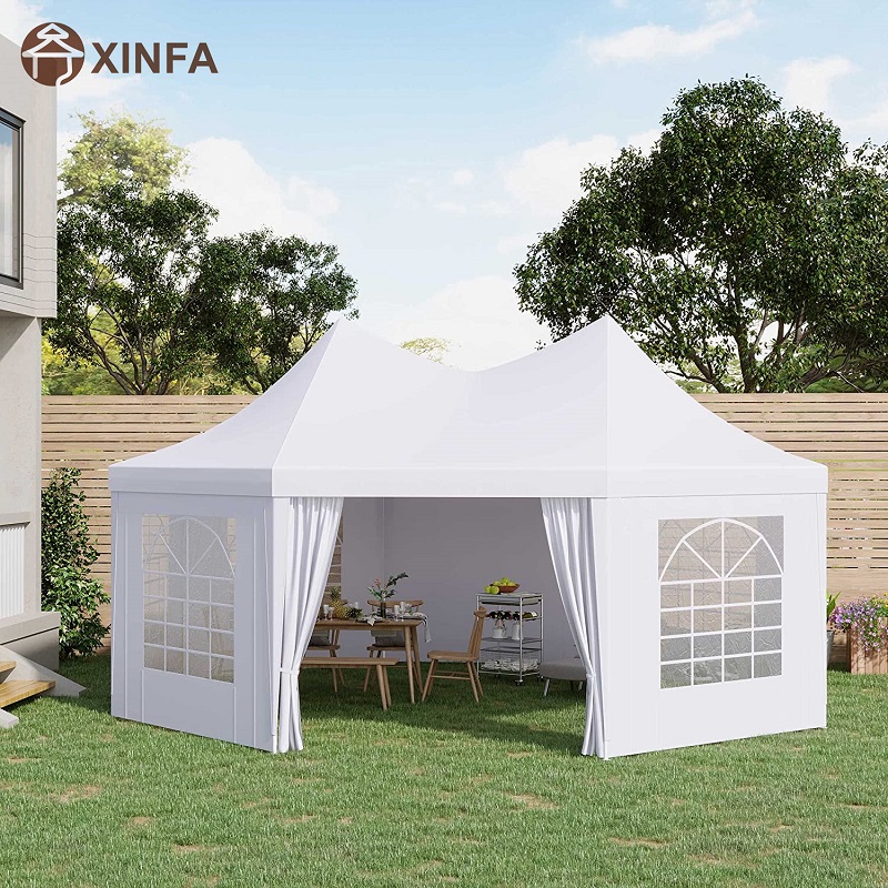 OPEN FLOOR DESIGN: This outdoor wedding tent shelter features an open floor design that means there are no columns on the inside taking up space. This makes the interior open and clear, maximizing your event or relaxing space.